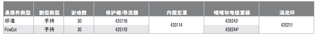 包含 2 個(gè) FineCut 噴嘴 (420117) 和 2 個(gè)電極 (420120)。